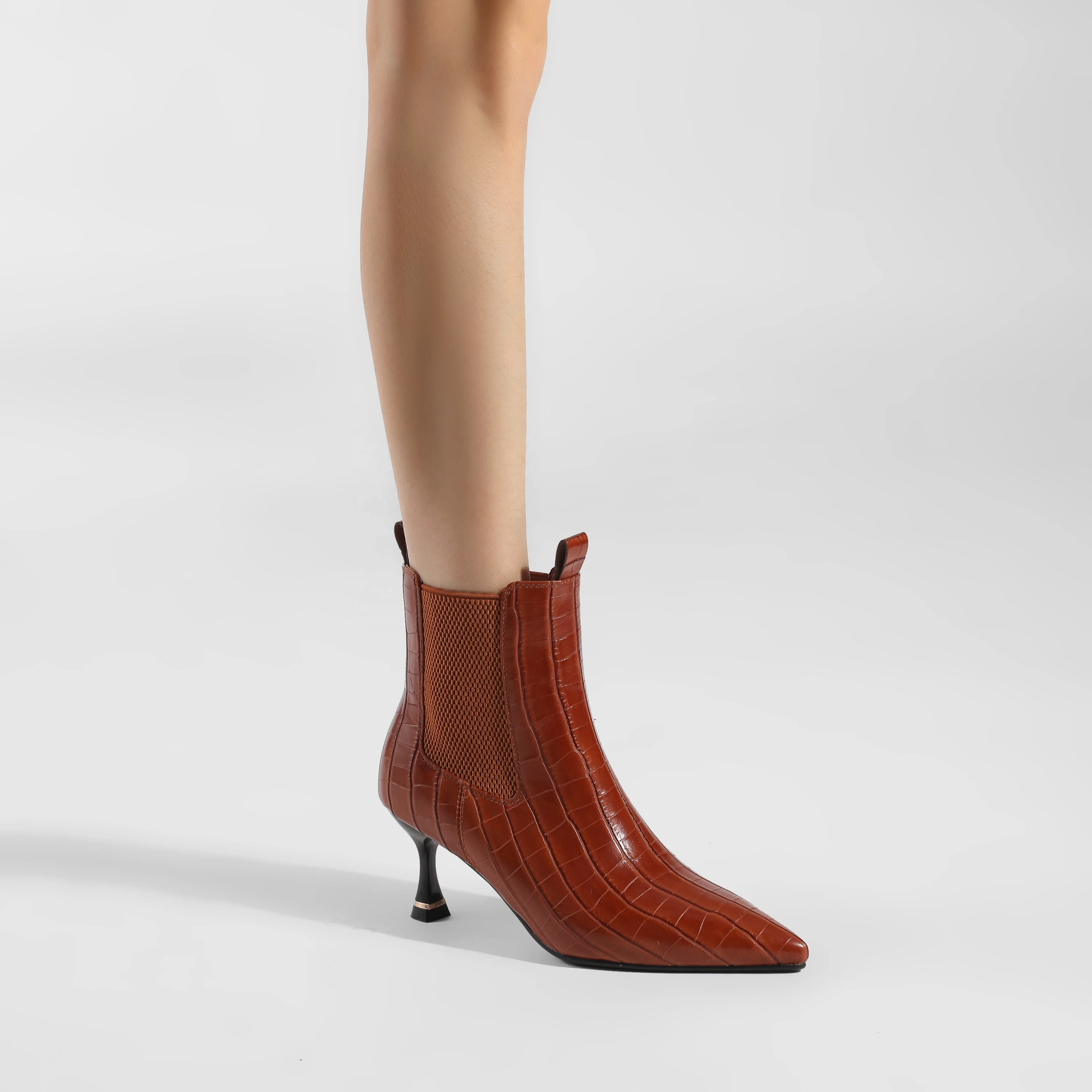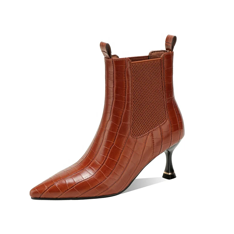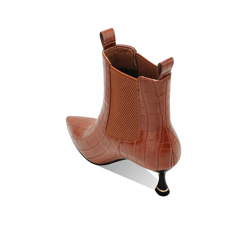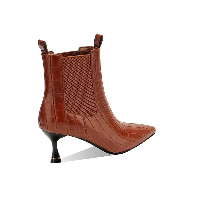 Moncheer Women's Croc-Embossed Chelsea Boots with Kitten Heel Pointed Toe Ankle Booties Fall Winter Fashion Boots